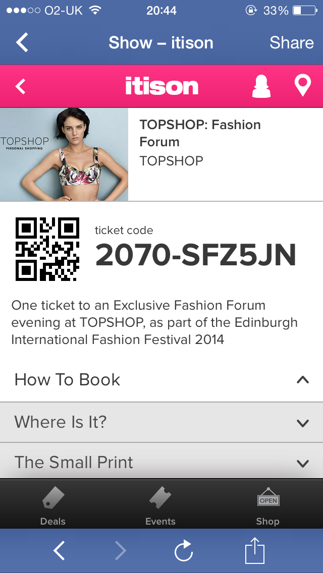 During one of the evening from Edinburgh International Fashion Festival I went along to the Topshop: Fashion forum. Sherri a blogger from foreveryoursBetty posted invitations to attend the fashion forum. Like The Scottish Fashion Network the tickets were an on-line format which is environmentally friendly. Great use of keeping the event sustainable.