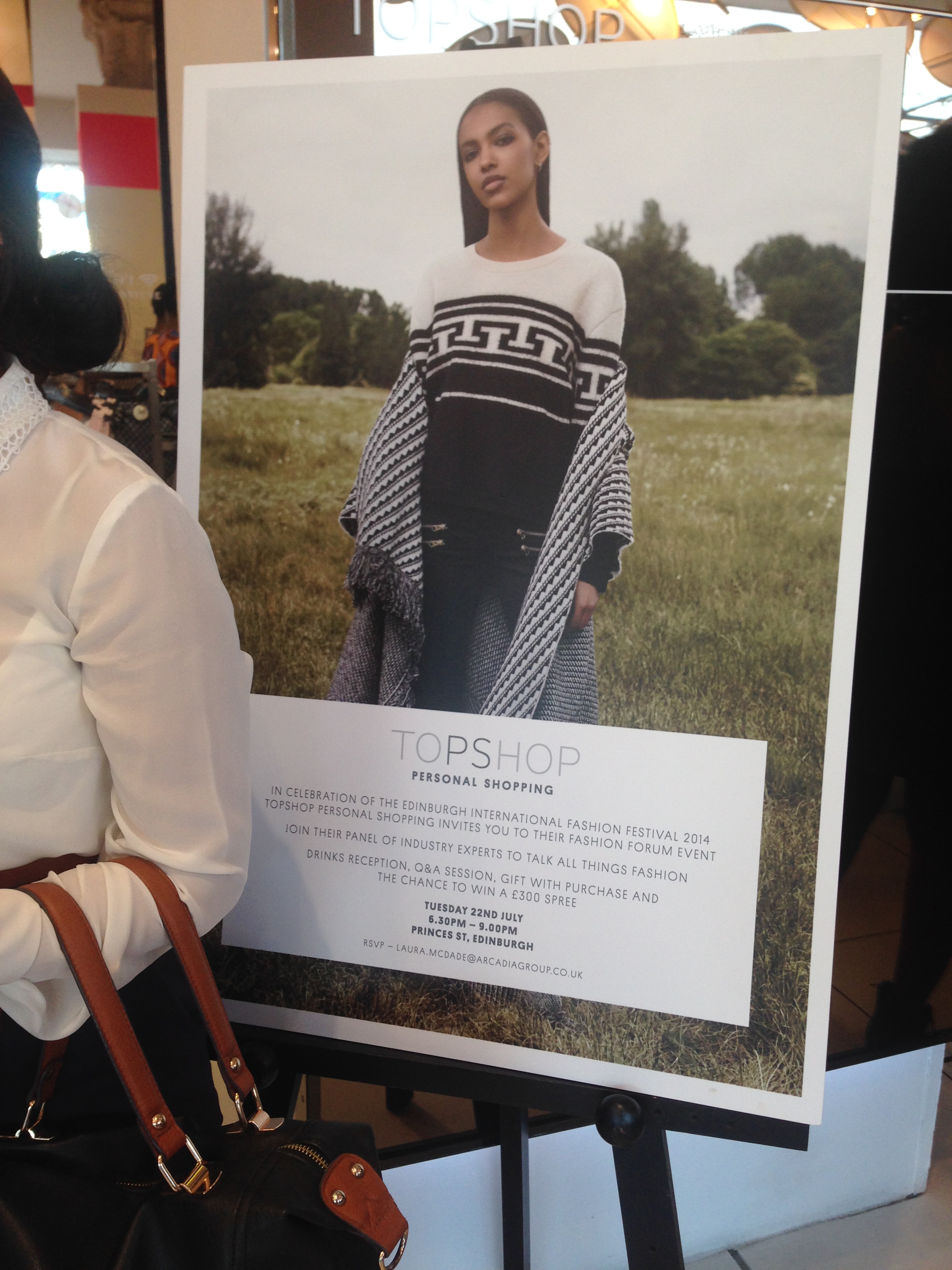 The evening was held at Topshop in Edinburgh’s busy High street after store hours. The Topshop fashion forum had a panel of fashion influences for a question and answer time.
