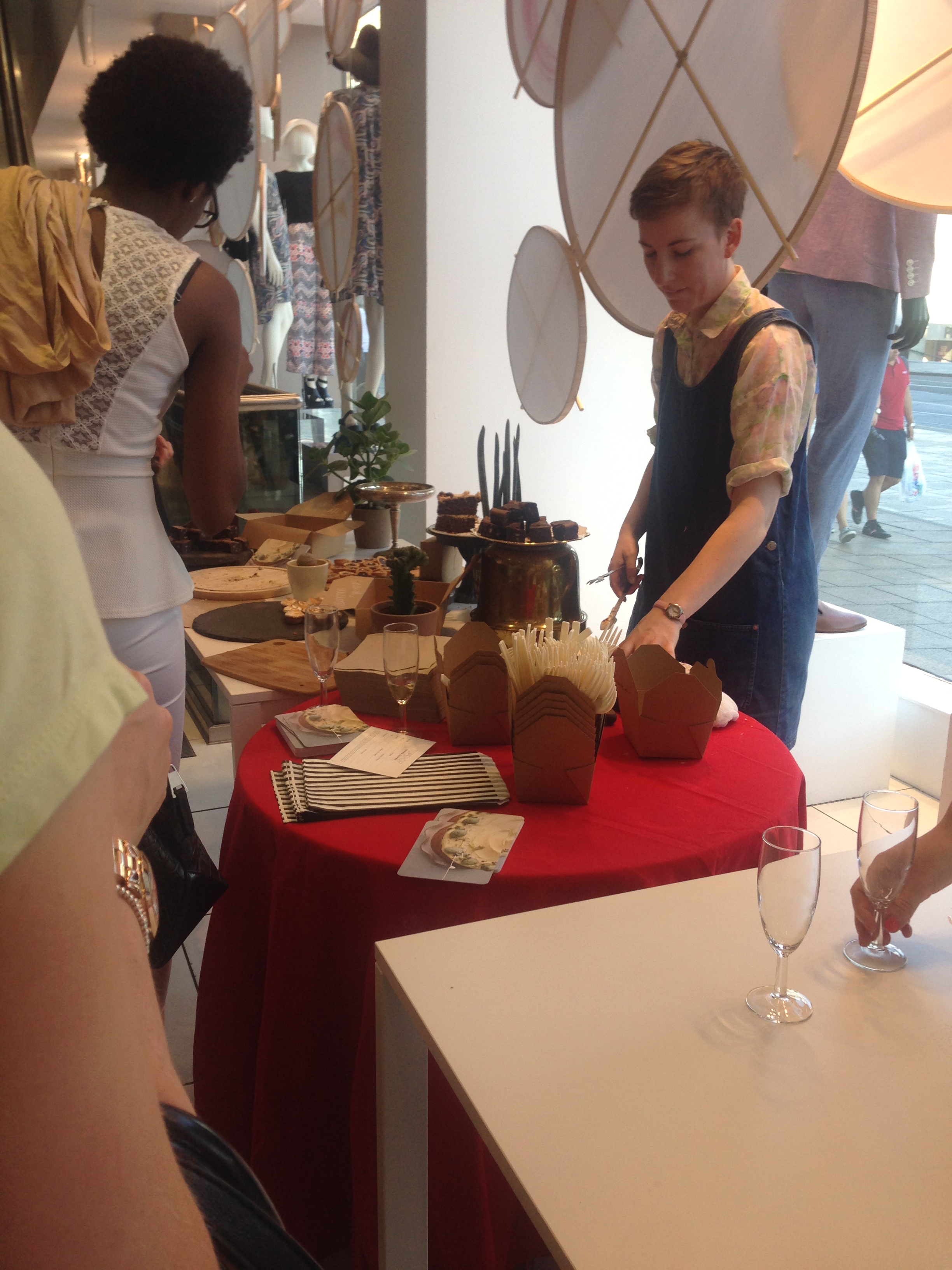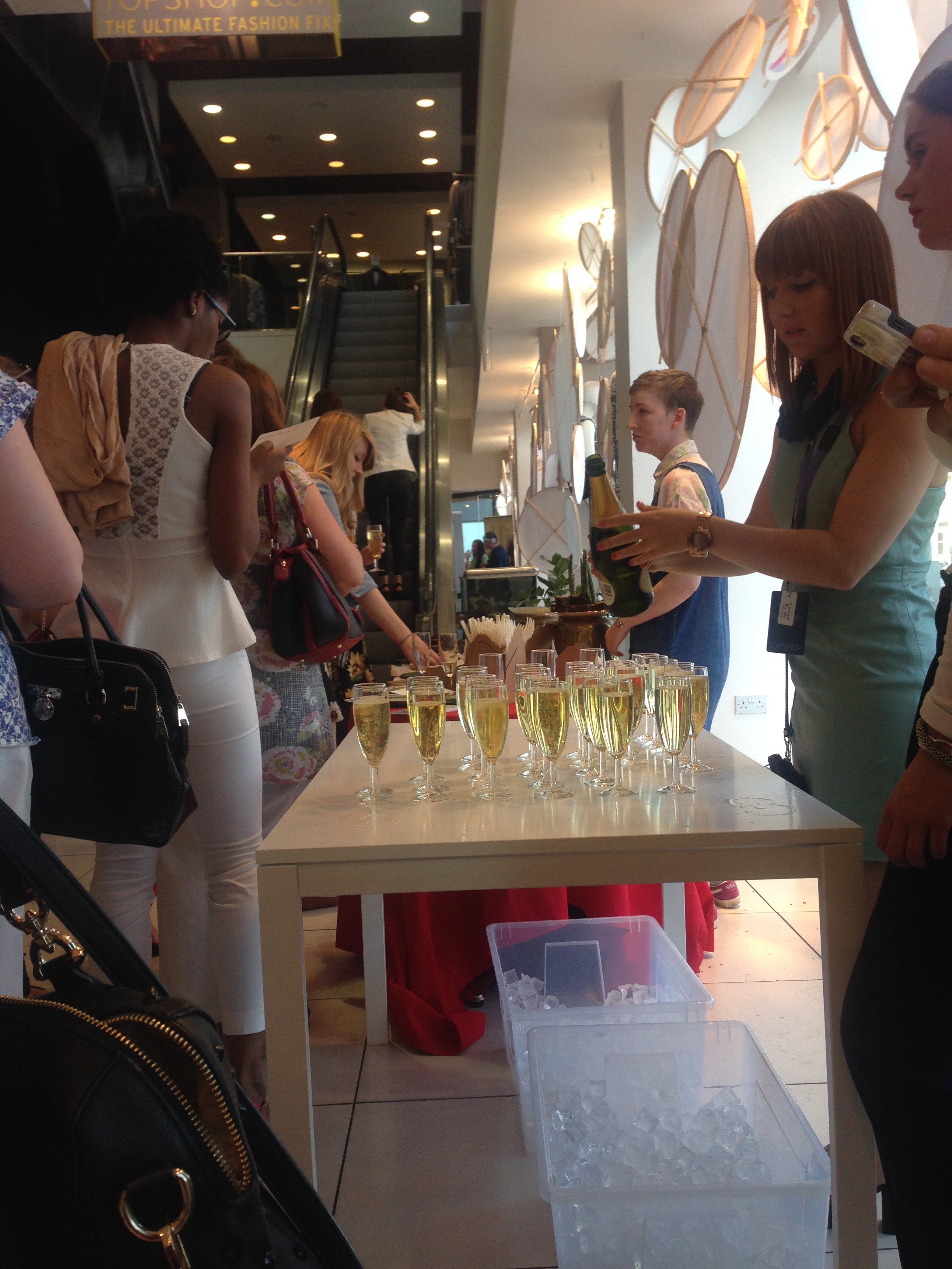 We were welcomed into Topshop and were given postcards to write our details on to enter a competition. There was slight queue for drinks and warm cakes. I was a little disappointed as there was no non-alcoholic drinks available, not even water especially on such a warm summers day.