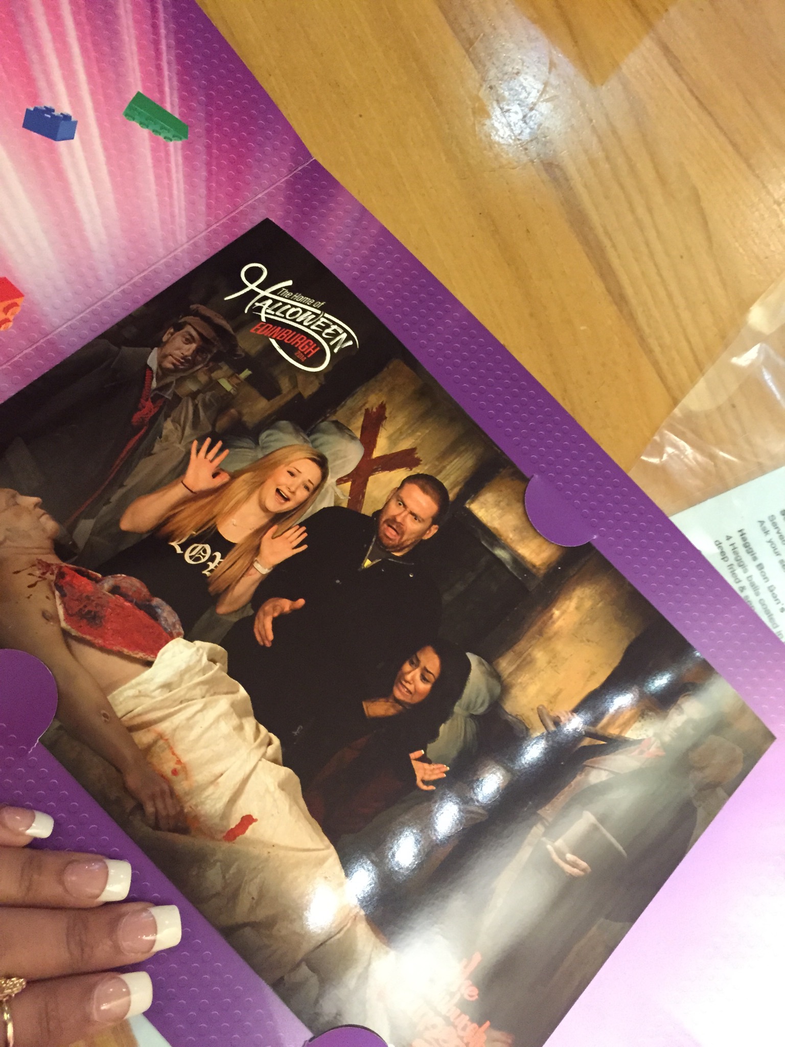 I went along with my two work buddies- Alistair from Avenue Q and my bestie Nicole Finley 🙂 I got to invite guests with me and as Alistair previously worked for Edinburgh Dungeons I thought I would be nice to see his reactions to the new Halloween special scenes.
